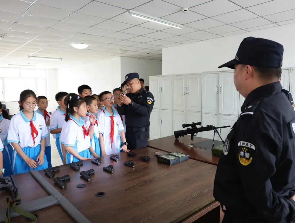 活动中,学生们洋溢着兴奋之情,满怀着好奇心,在民警的带领下,有序参观了出入境大厅、特警大队、指挥中心等部门。通过参观实物、听取讲解、回答咨询、模拟表演、警用器械展示等方式,让同学们身临其境感受到了民警的工作生活环境,零距离体验警营生活。